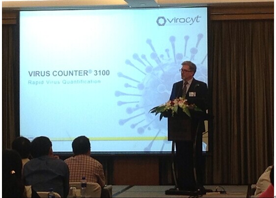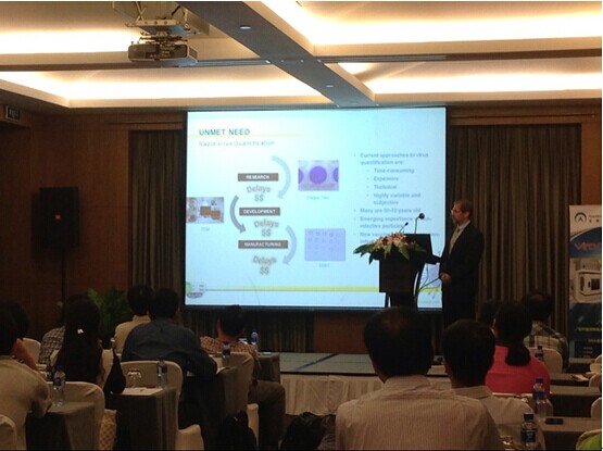 The participants showed strong interest in the method of rapid quantification of virus when Dr. Ewan Plant making a report to discuss this subject. The rapid quantification of virus technique introduced by Virocyt company has a rapid analysis, high performance, small error, analysis low cost, high degree of automation, high sensitivity and other characteristics. It can realize real-time monitoring of the virus.